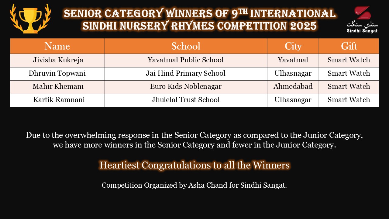We are happy to announce the results of our 9th International Sindhi Nursery Rhymes Competition 2025.