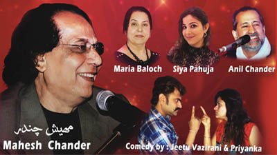 A grand Sindhi evening with Singer Saral Roshan and the famous comedy duo Jaya and Niroo Asrani all from India with the well known Shanila Ali from Sindh