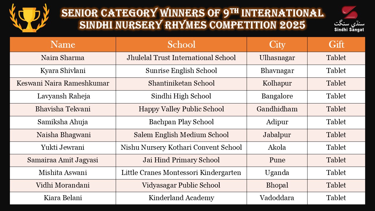 We are happy to announce the results of our 9th International Sindhi Nursery Rhymes Competition 2025.